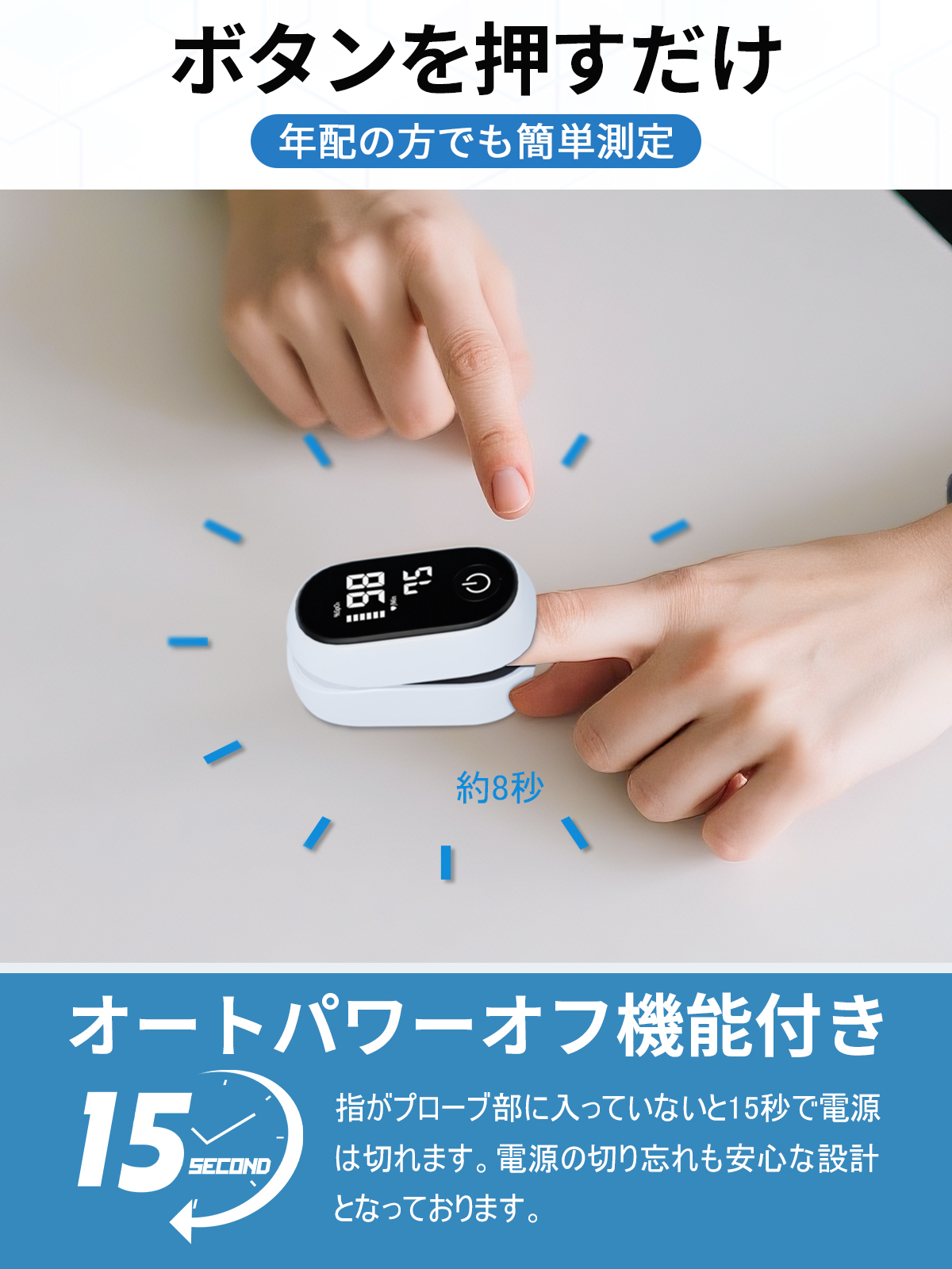 | 測定部位 | 手指<指の太さ(直径):8mm〜25.4mm推奨> |
