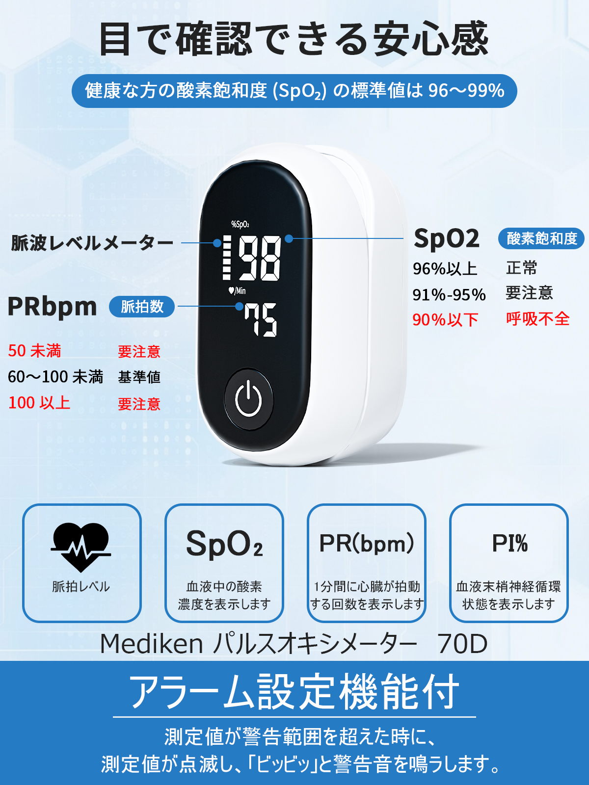 ご自身の「平時の基礎数値」を知っておくことで、数値が低下した際に体調不良をいち早く察知し、医療機関への受診を検討する際の目安となります。