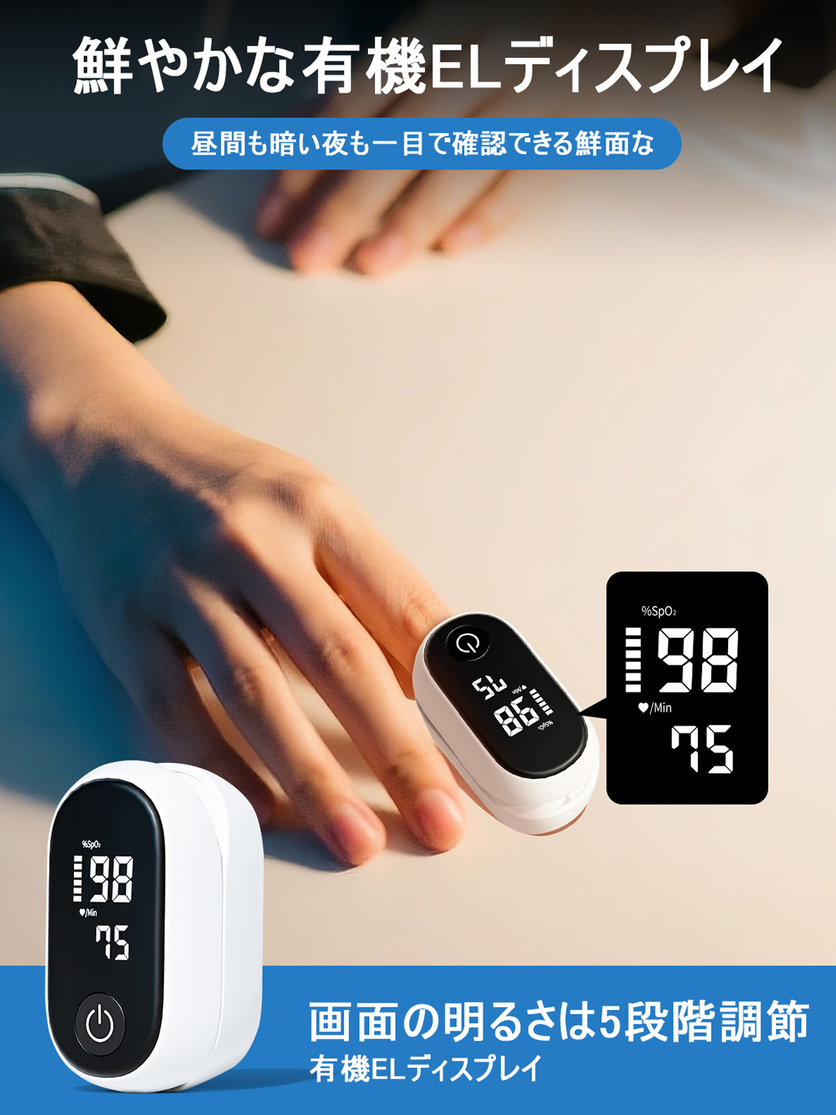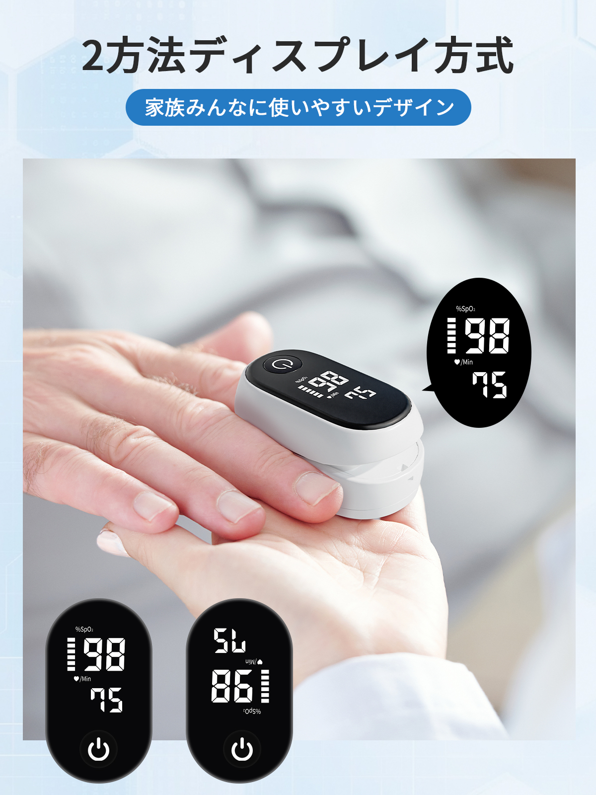 | 測定範囲 | 酸素飽和度 (SpO2):35%〜100% 脈拍数 (PR):25bpm〜250bpm |