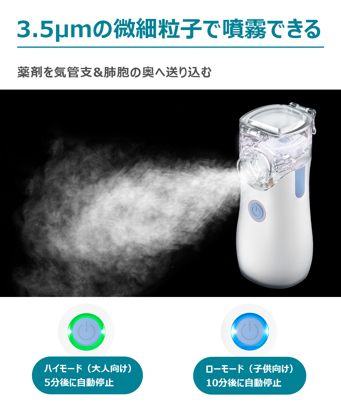ネブライザーは液状の吸入薬を細かい霧状にすることによって、患者が口や鼻から呼吸をすると共に