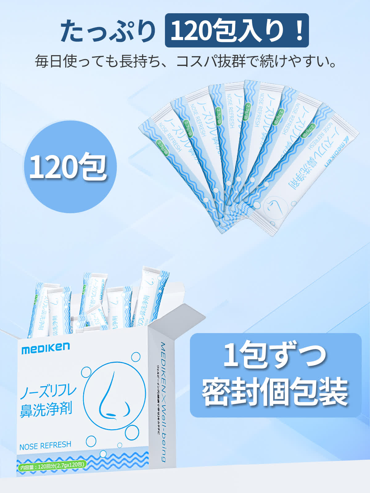 | バッケージ内容 | ノーズリフレ鼻用洗浄剤 × 120包 |