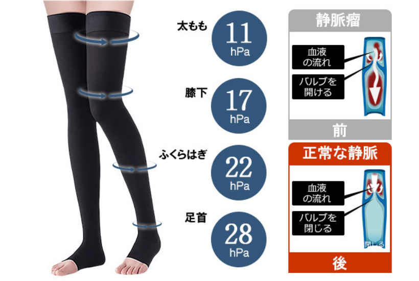 ふくらはぎ約22hPa、足首約28hPa、