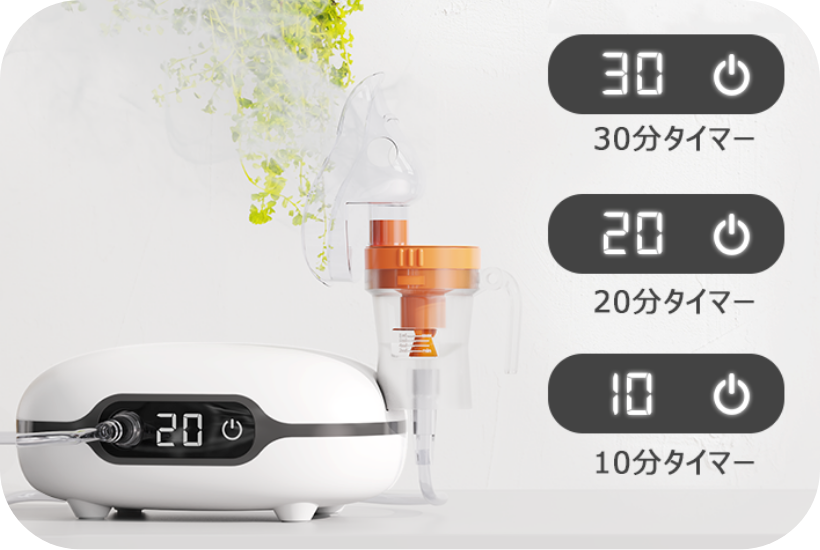 噴霧時間が30分間/20分間/10分間で設定可能。