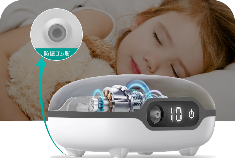 最新型!低騒音型モーターを搭載、防振ゴム脚により