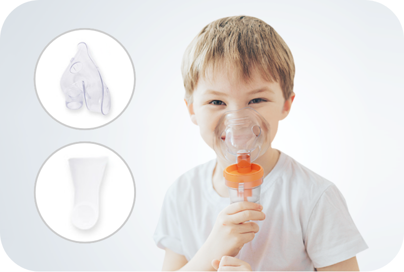 - 1.薬液ボトル、マウスピース、吸入マスクを清潔な水で洗浄してください。