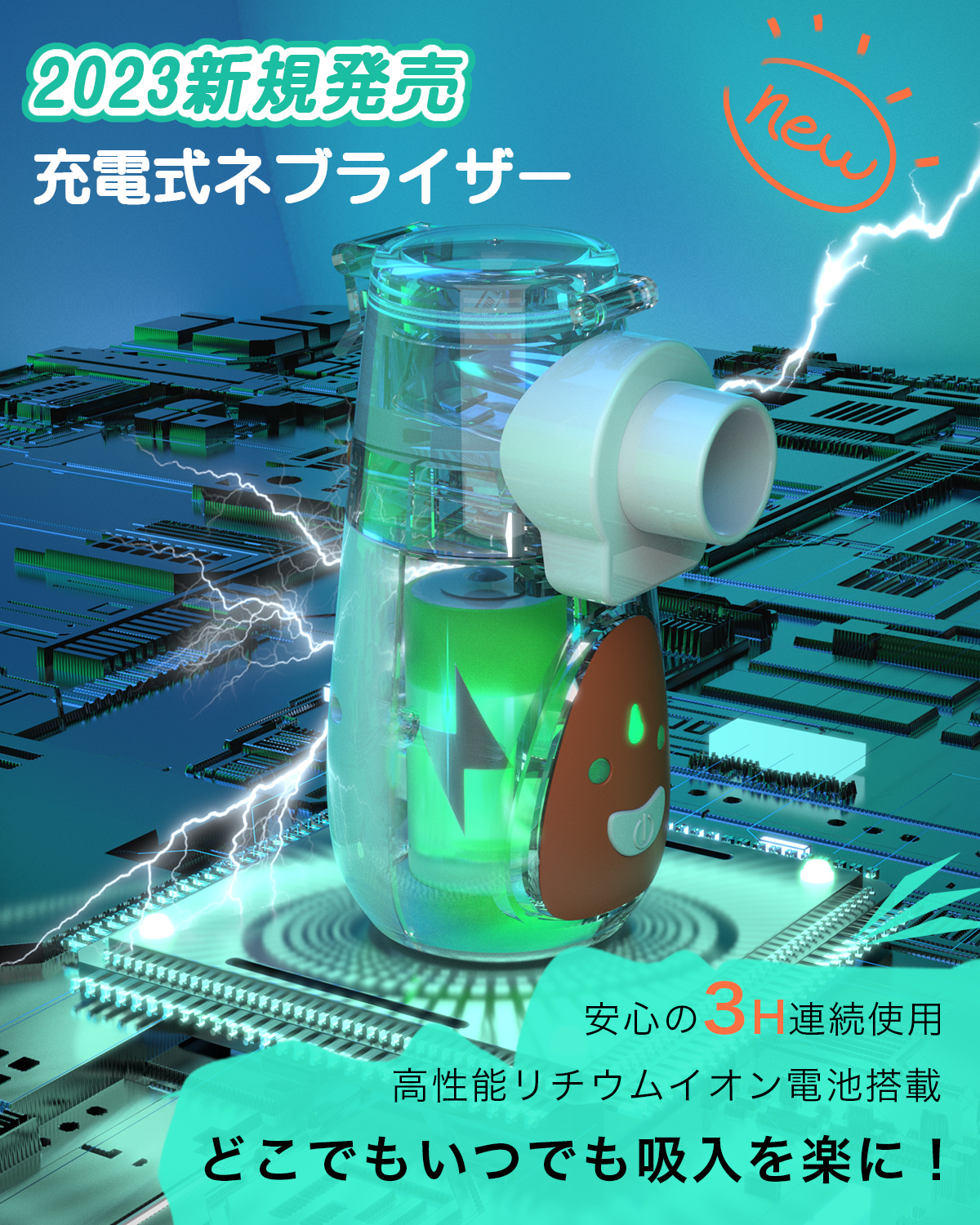 ネブライザーは液状の吸入薬を細かい霧状にすることによって、患者が口や鼻から呼吸をすると共に