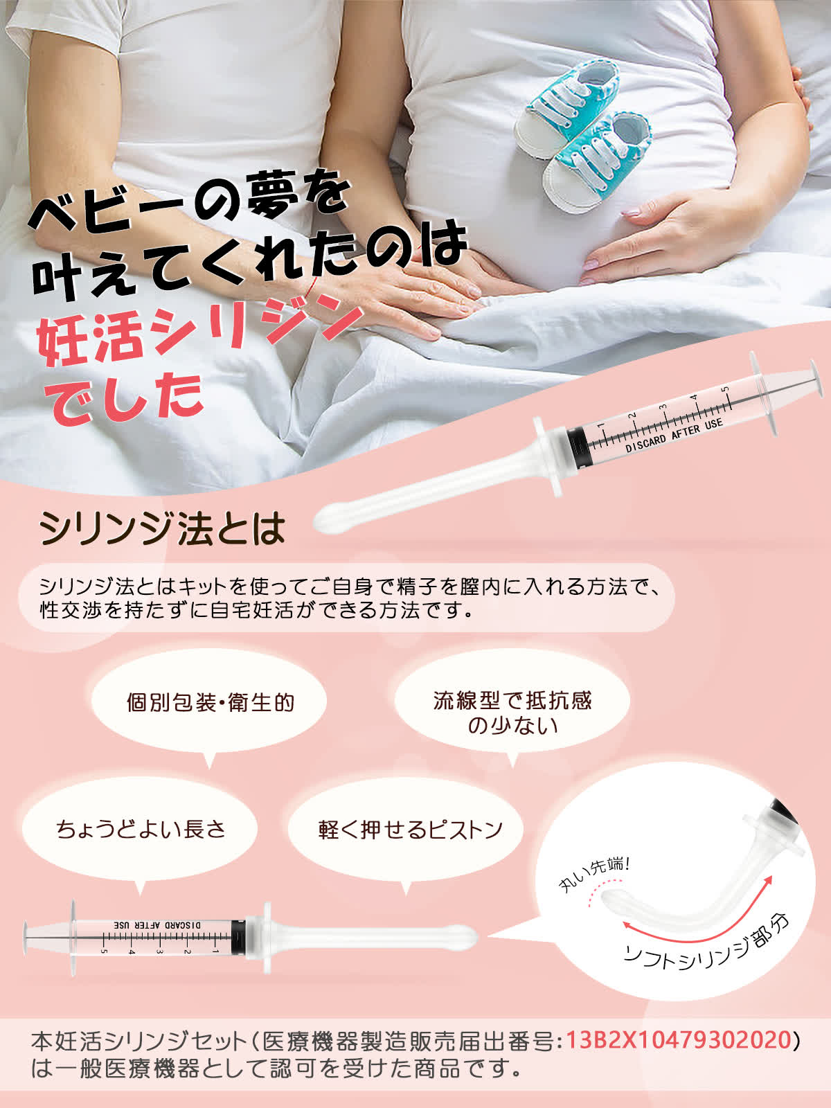 シリンジ法とはキットを使ってご自身で精子を膣内に入れる方法で、性交渉を持たずに自宅妊活ができる方法です。