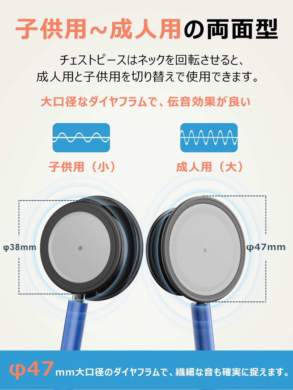 成人用と小児ダイアフラムを両面に搭載したデザイン。