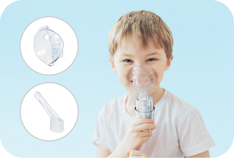 - 1.薬液ボトル、マウスピース、吸入マスクを清潔な水で洗浄してください。
