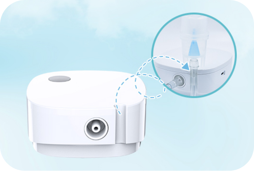 - 2.薬液ボトル、マウスピース、吸入マスクを医療用アルコール綿で優しく拭いて消毒してください。