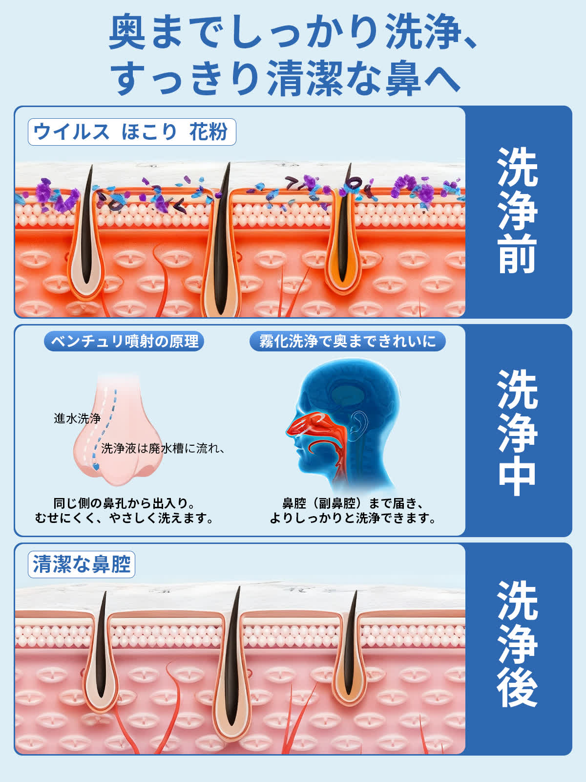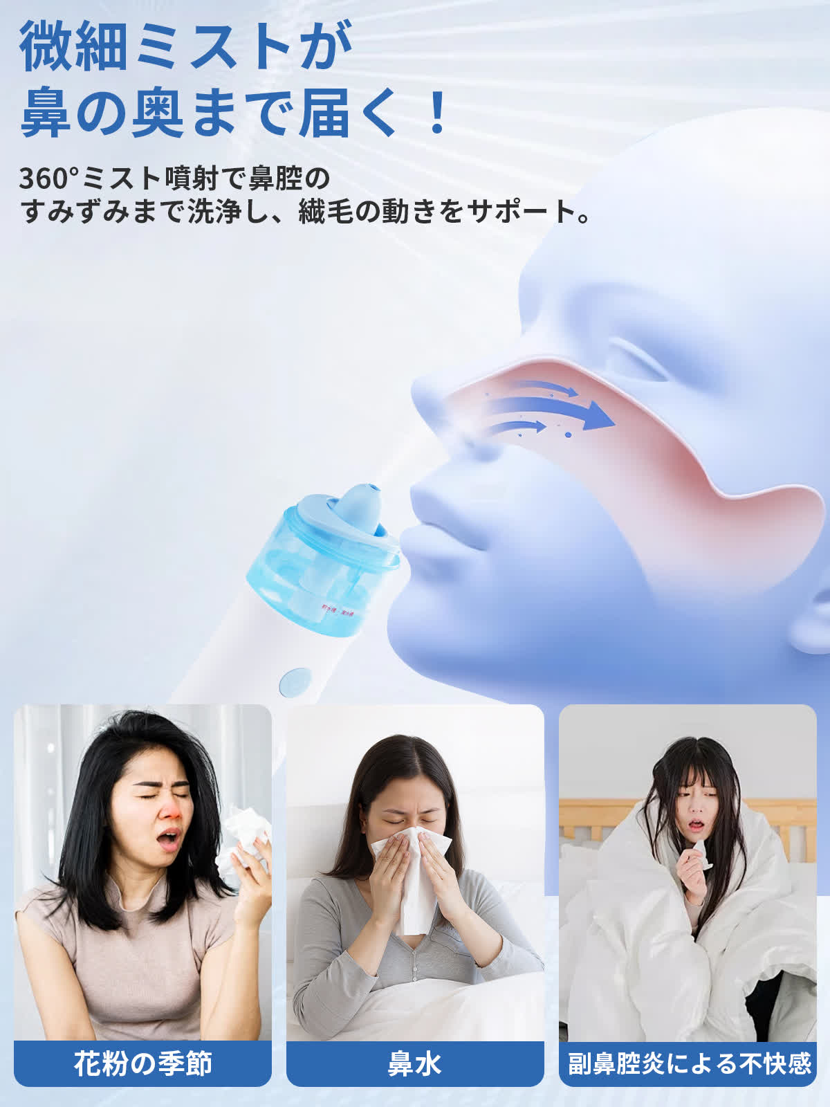 ※ノズルをくっつくように鼻孔に強く当たらないでください。