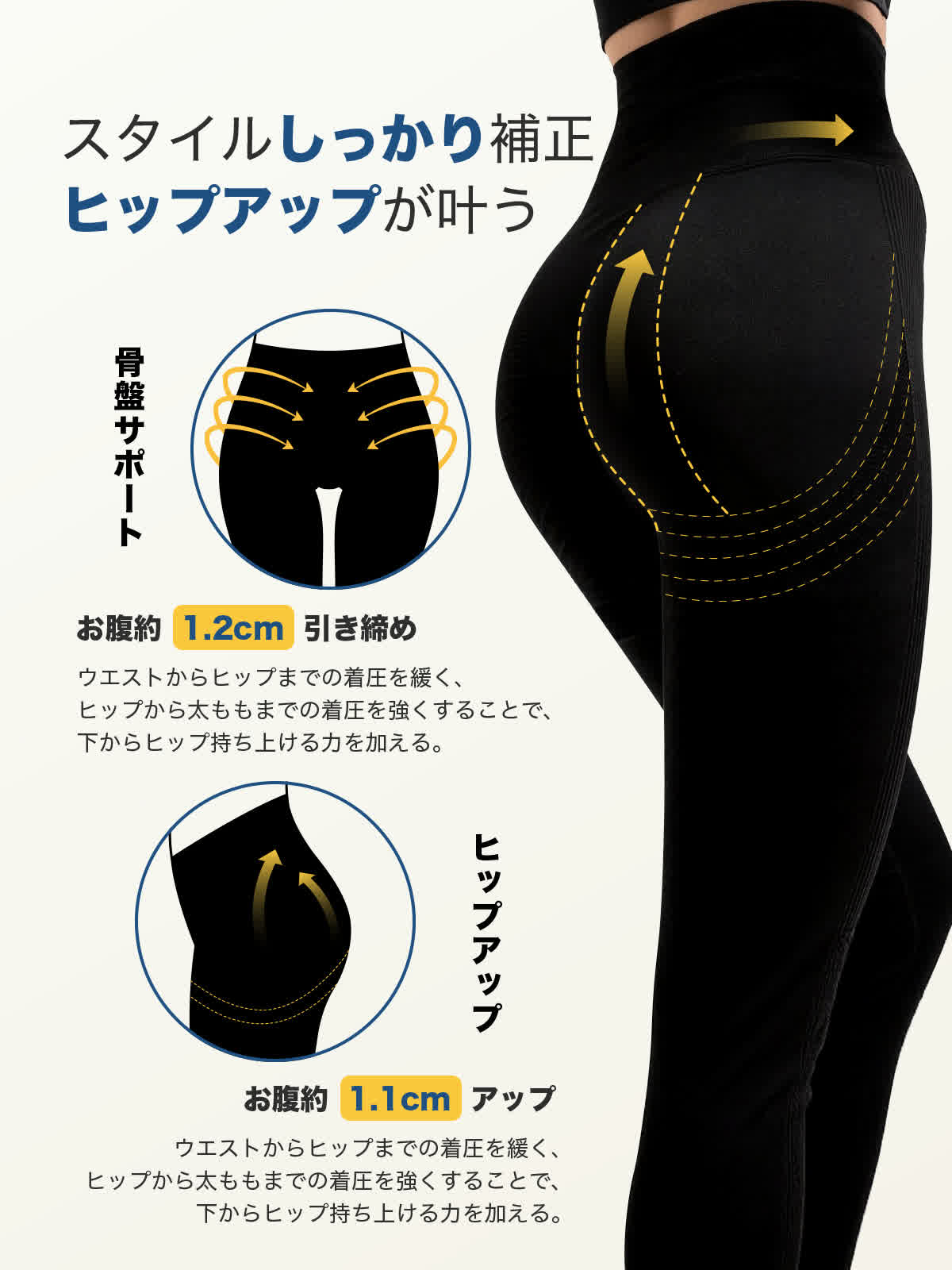 医学的知見に基づき、足首から太ももへ最適な圧力を配分。重力に逆らう黄金比の引き締めで、苦しくないのに理想的なラインを叶えます。 - ・骨盤をやさしくケアして美姿勢キープ